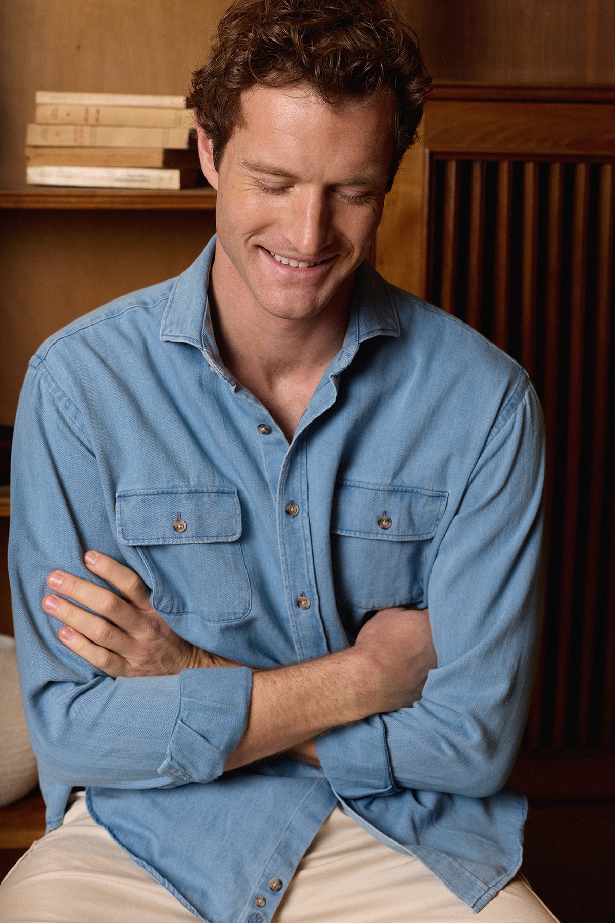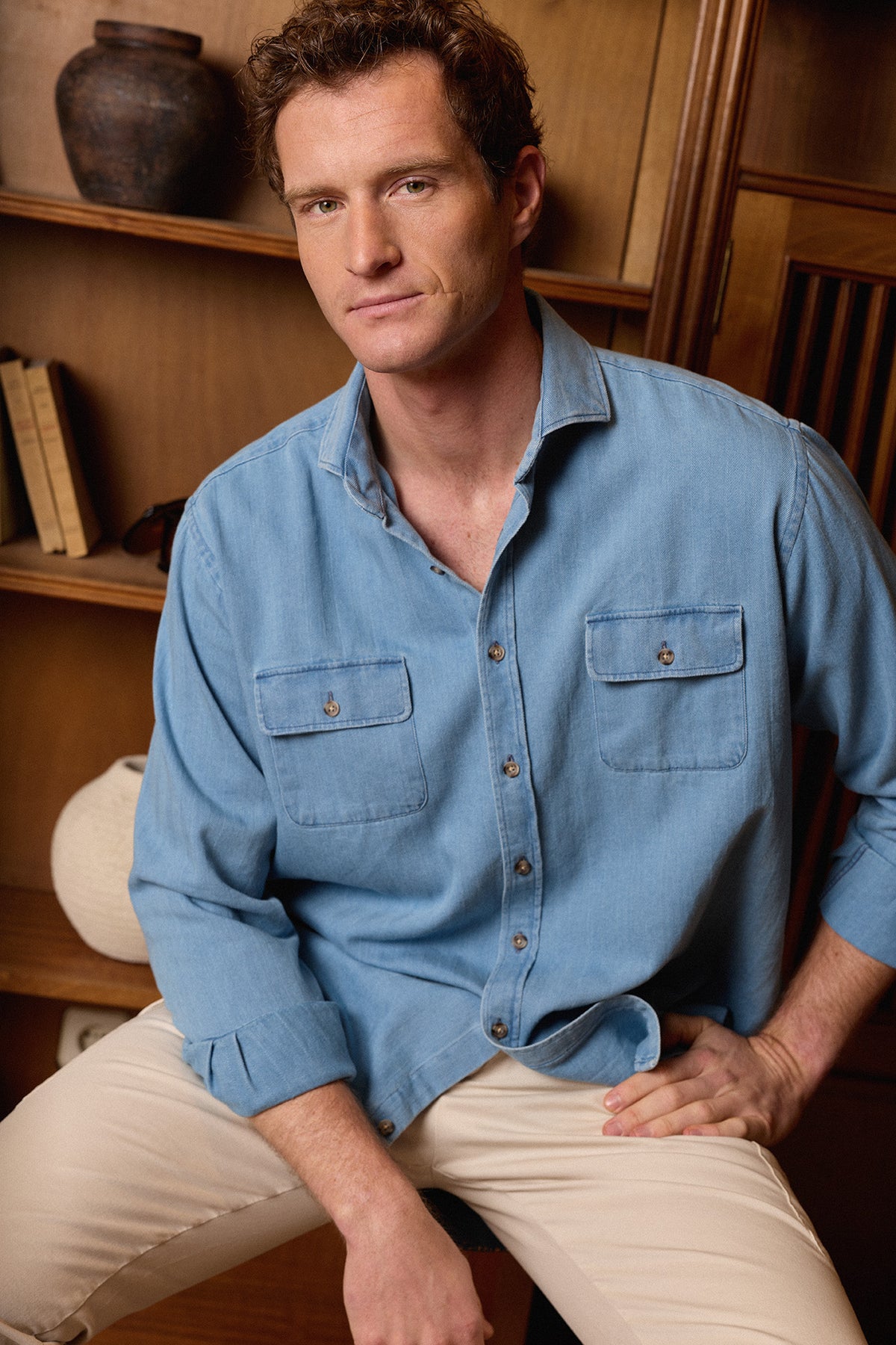 Camisa denim de espiga para hombre, confeccionada en Ciudad Real con tejido premium, duradero y confortable tras un lavado suavizante que flexibiliza las fibras. Presenta doble bolsillo frontal, cuello italiano blando, tapeta con botones cuerno, espalda con tablón central, puño simple y logo oculto. Prenda versátil, elegante y resistente para el día a día o looks más cuidados.