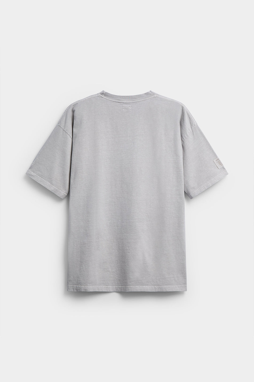 Camiseta confeccionado con 100% algodón orgánico de hilatura open-end de 210 g/m2. Se ha procedido a tintar la prenda en color verde sage con tintes naturales y, de manera posterior, se ha sometido a un proceso de lavado que le confiere un aspecto vintage & eighties. Entre sus principales detalles de diseño destacan: