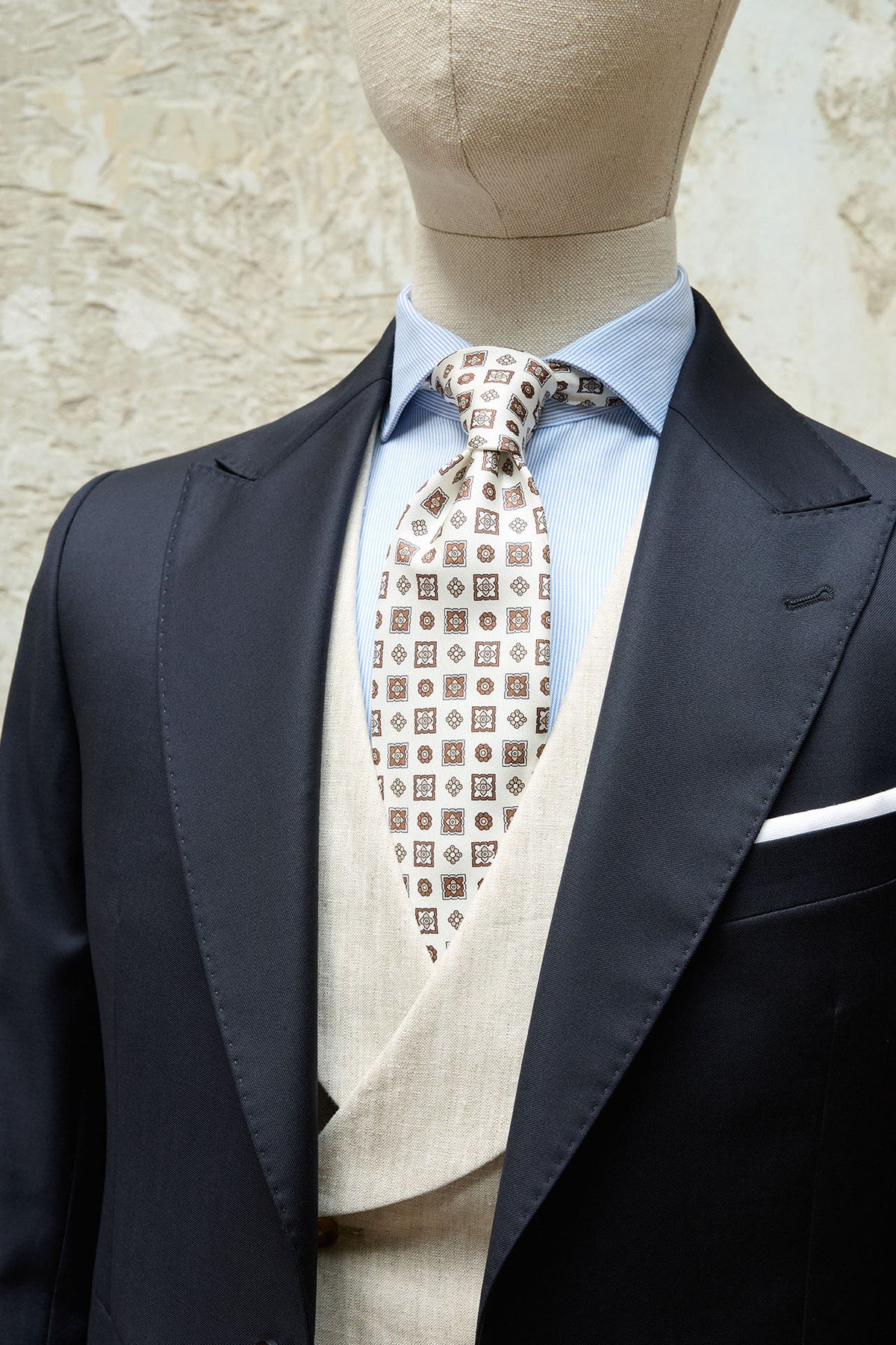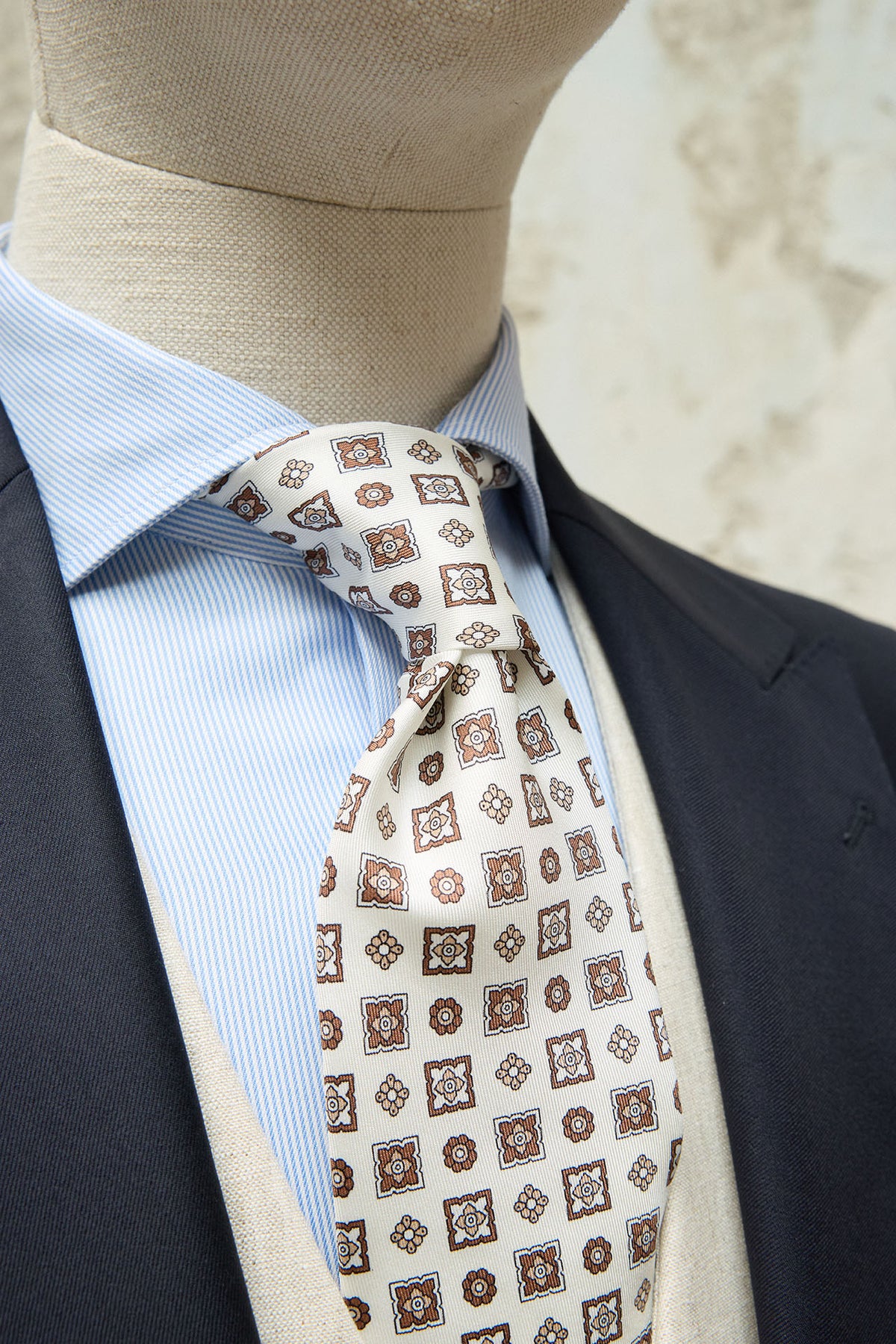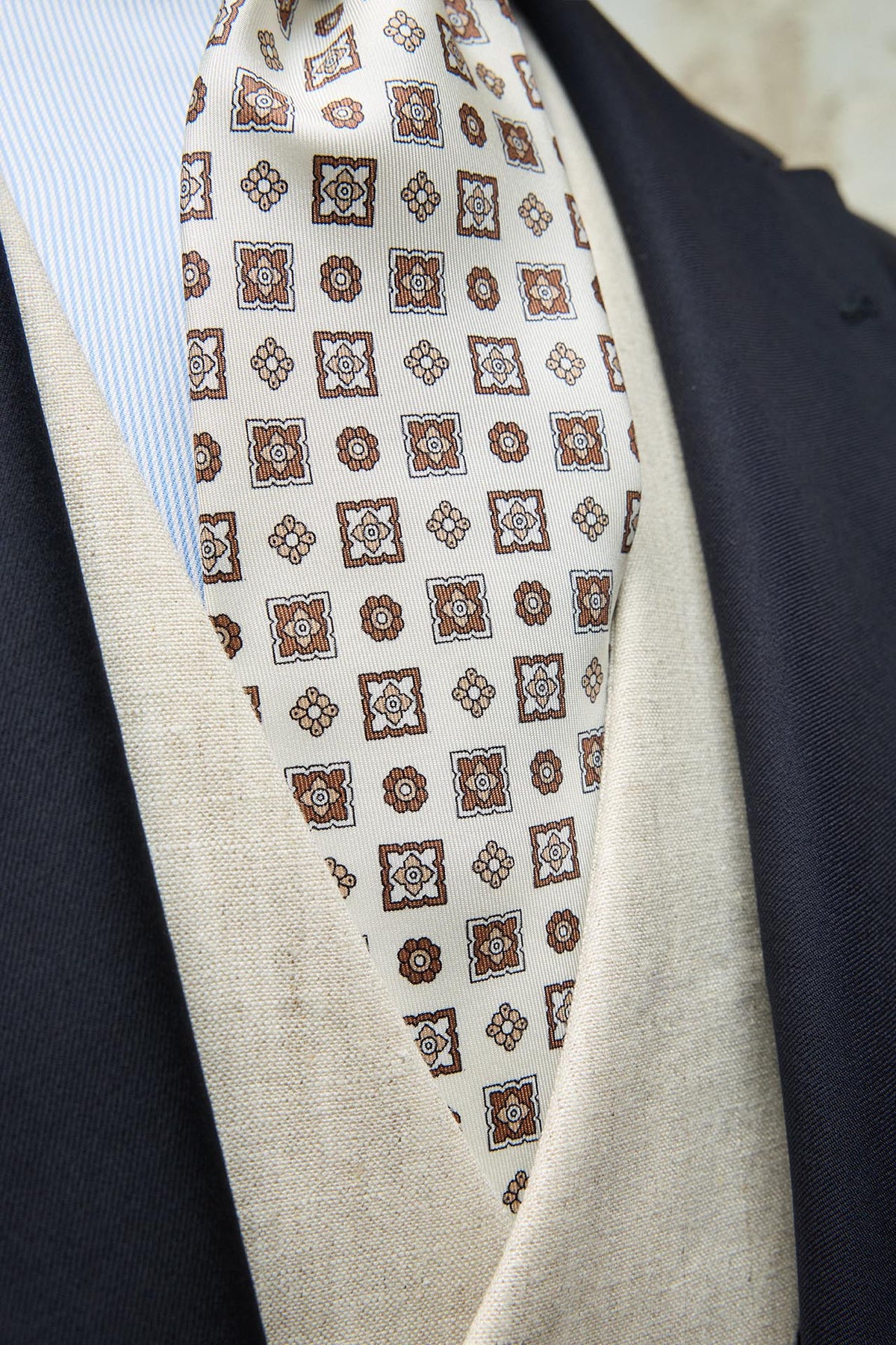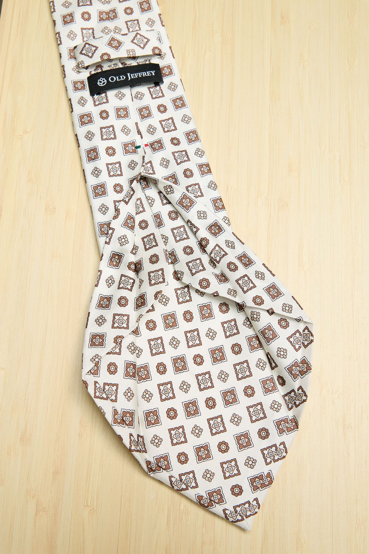 Corbata Siete Pliegues Blanco Hueso Geometría Mixta Marrón y Beige