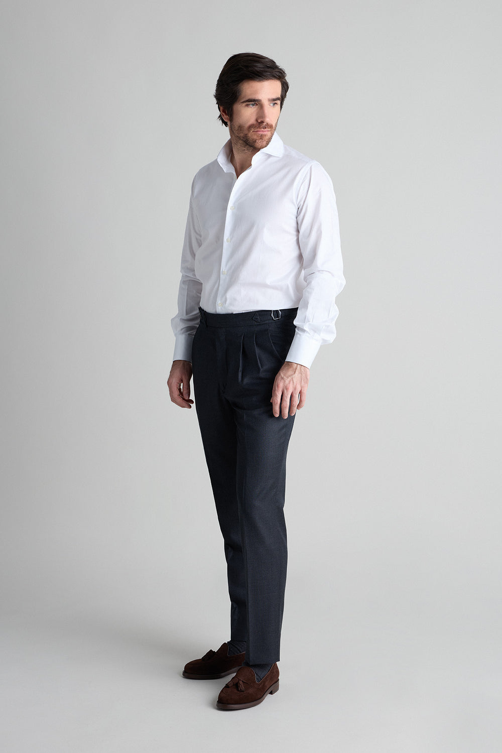 White Dress Shirt Thick Light Blue Linear Check WITHOUT Cufflinks