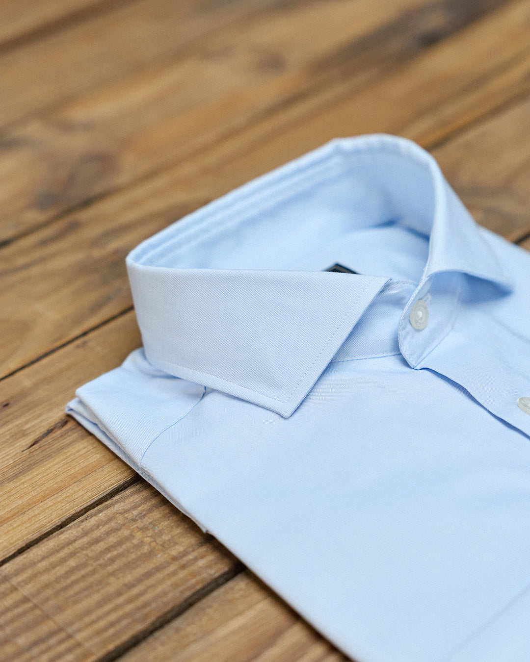 White Dress Shirt Micro Fine Linear Check Light Blue WITHOUT Cufflinks