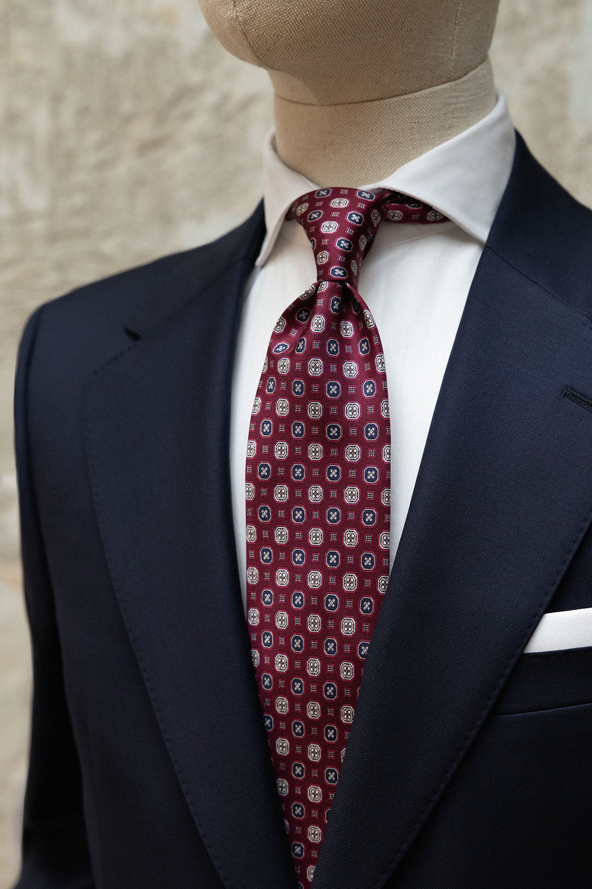 Descubre la exclusiva corbata de seda 100% confeccionada artesanalmente en un pequeño taller de Nápoles, Italia. Cada pieza está elaborada con la máxima atención al detalle y un acabado completamente hecho a mano, reflejando la tradición y la excelencia de la sastrería napolitana.