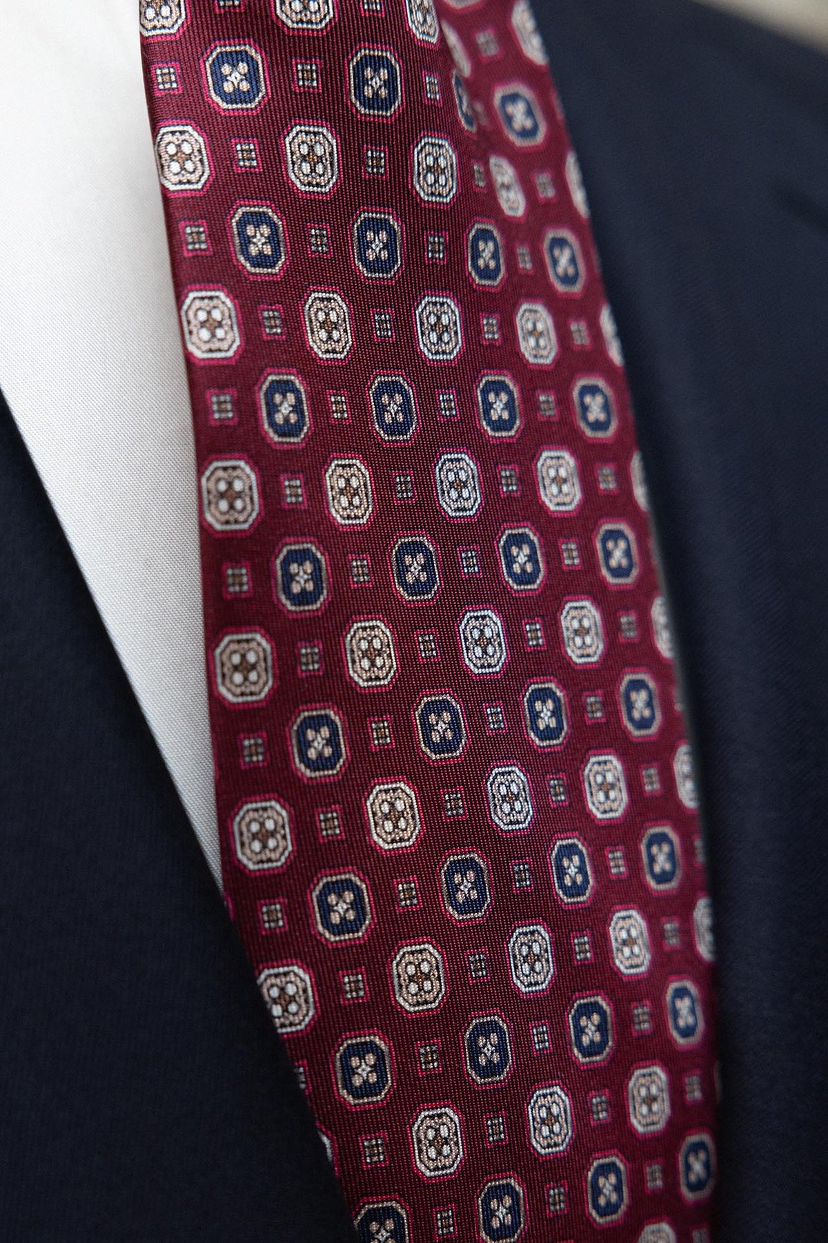 Corbata Napoli Seda Burdeos Geometria Octogonal Ocre