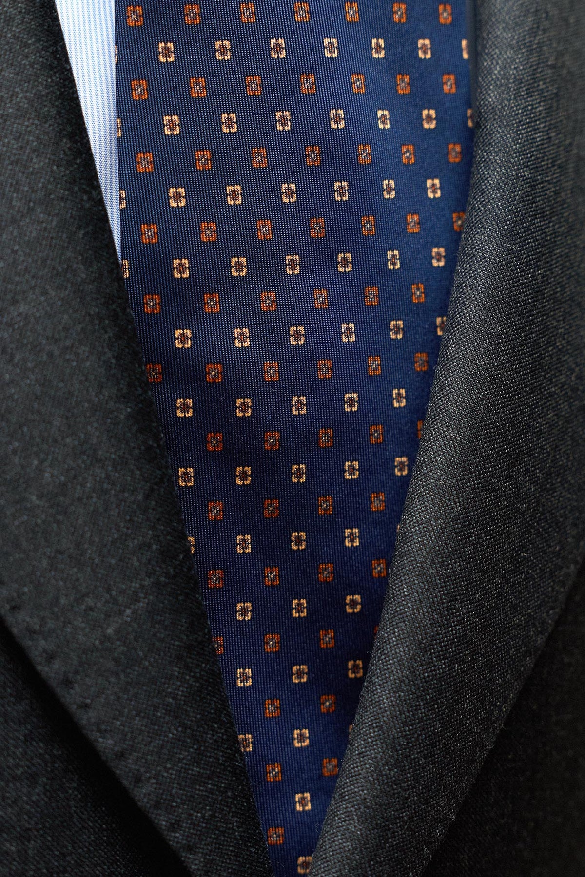 Corbata Napoli Seda Azul Marino Geometria Cuadrada Teja