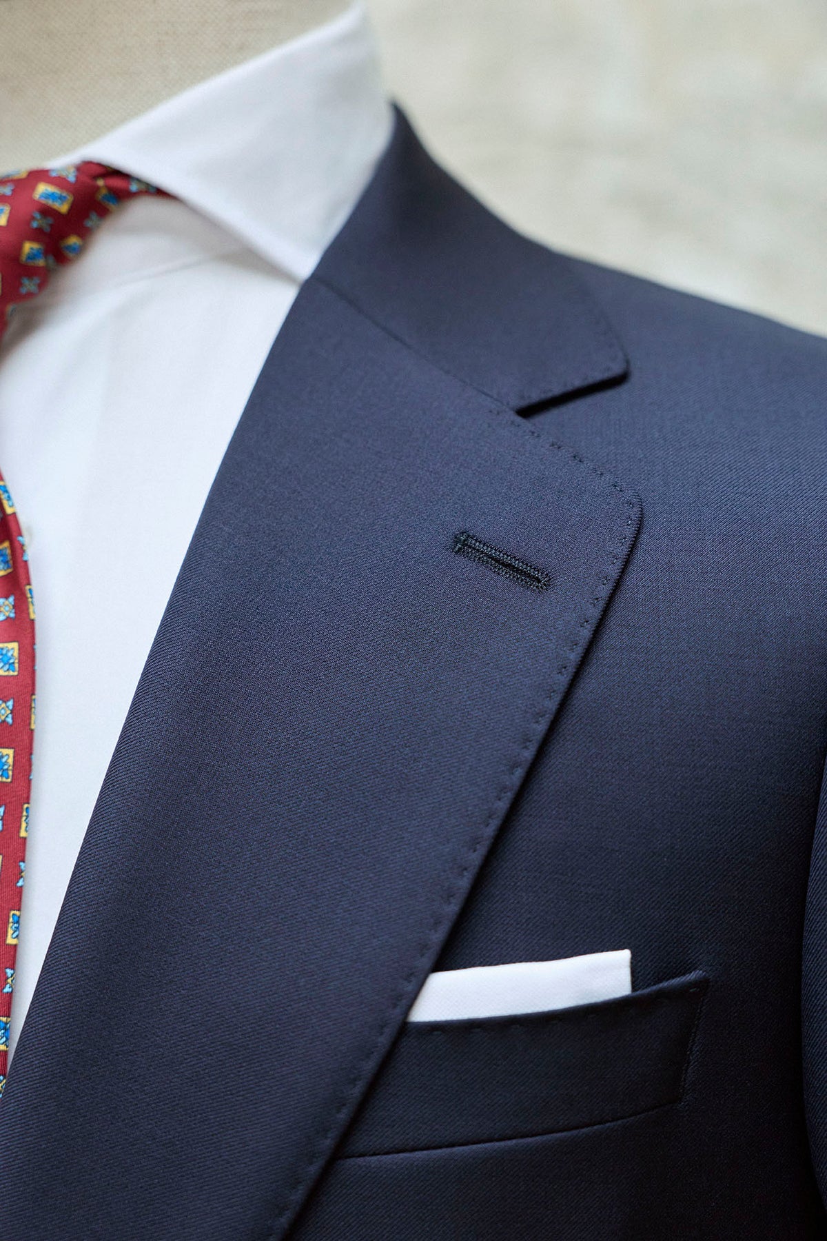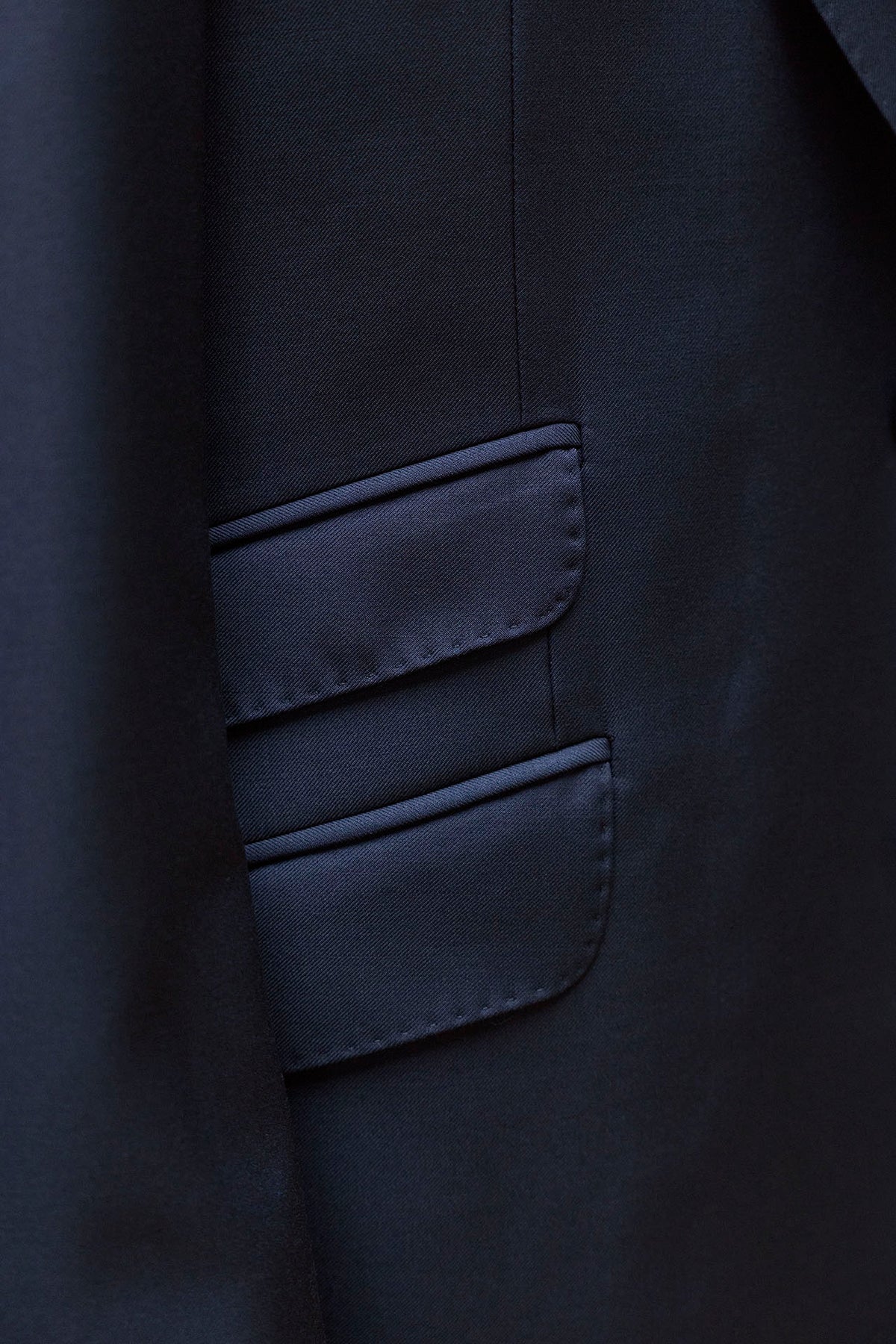 2-piece Half Canvas suit made in Coimbra (Portugal) using a navy blue fabric in 100% super 120 wool quality from the Italian fabric house Vitale Barberis Canonico . Regarding the costume design, the following stand out: