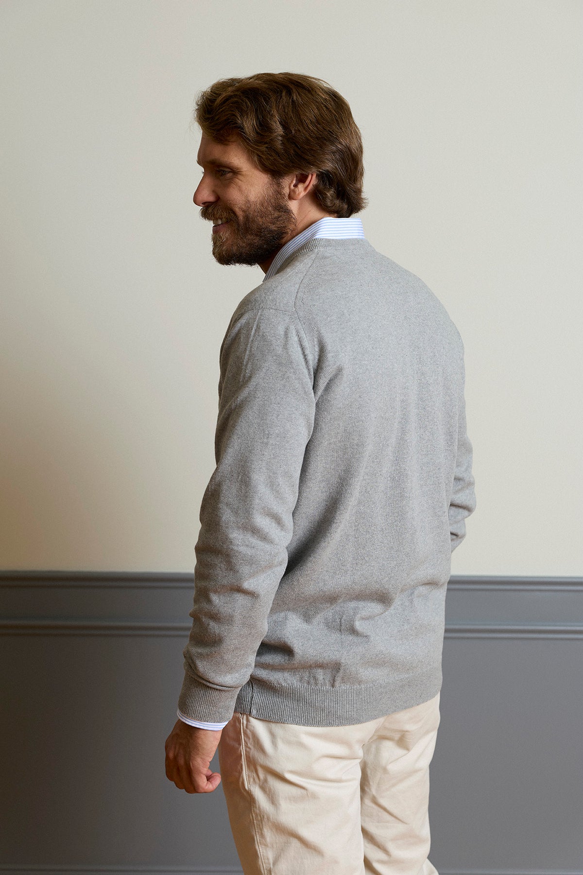 Este jersey de cuello pico destaca por su confección artesanal en La Rioja (España) y elaborado con algodón 100% natural. Su cuidada elaboración garantiza una prenda de gran durabilidad, suavidad y confort al contacto con la piel.