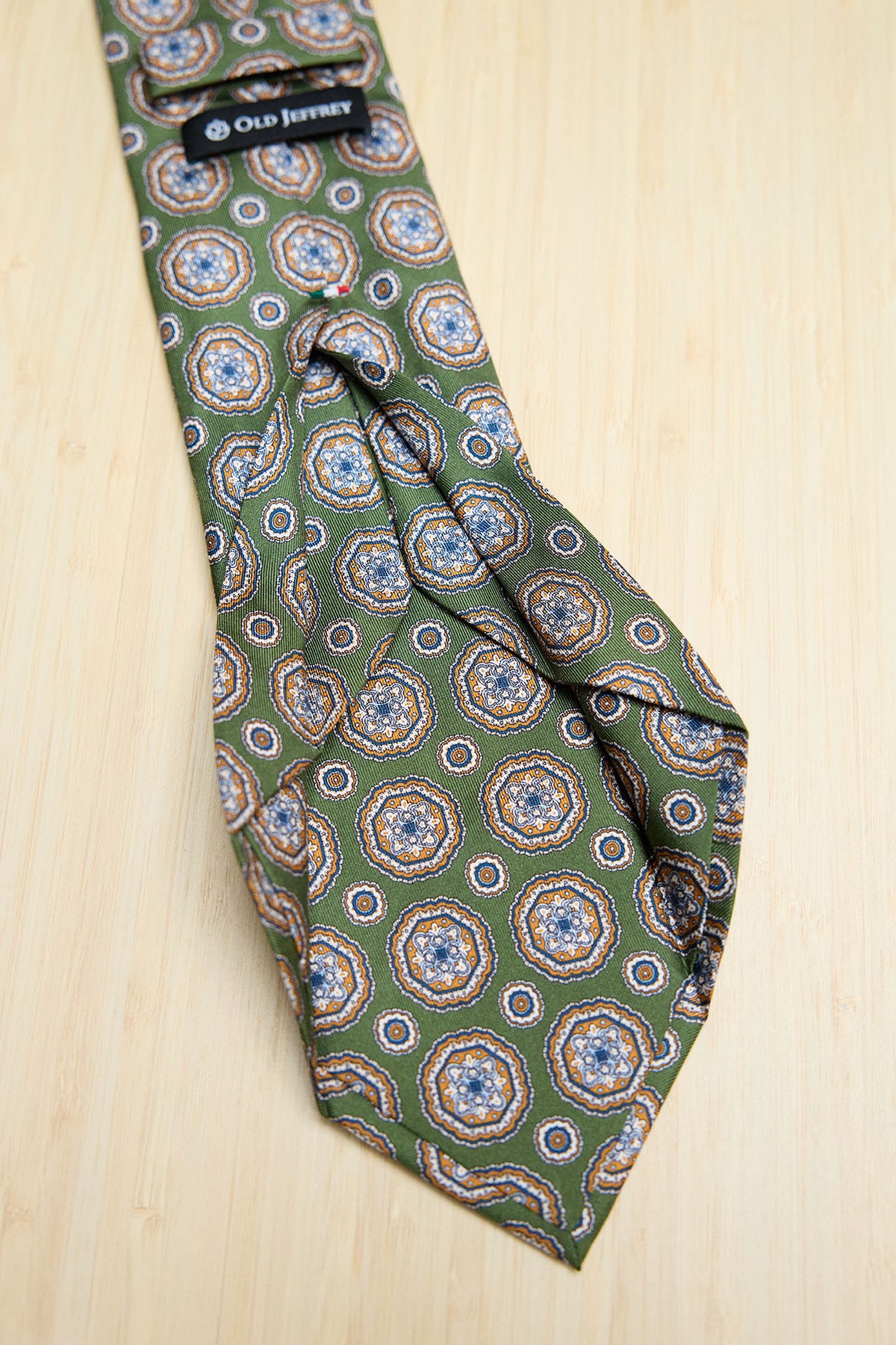 Spring Green Seven Fold Tie XL Mustard and Navy Crowns