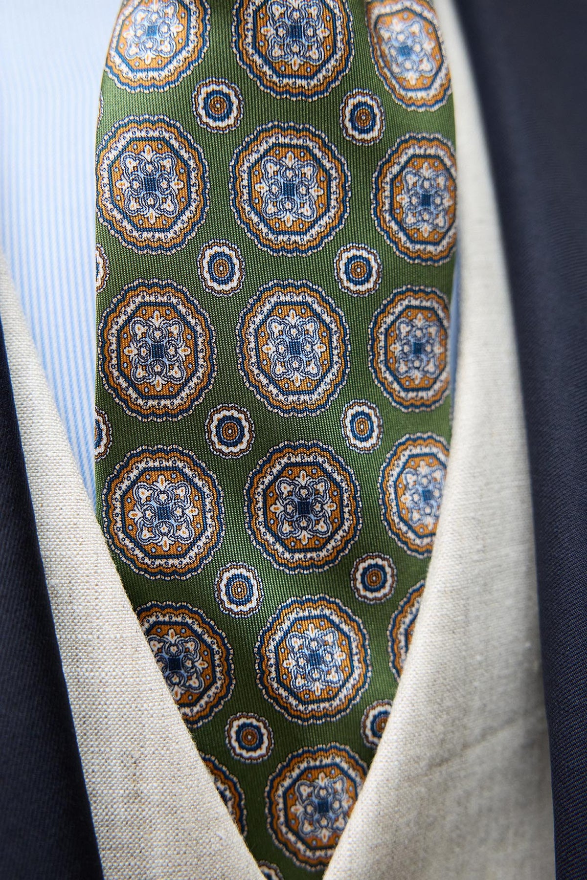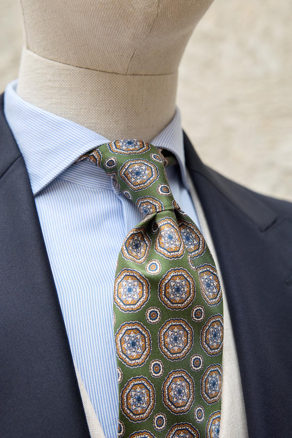 This tie is made in a small town in Naples, distinguished by the quality of its 100% silk. Every detail has been carefully hand-finished.