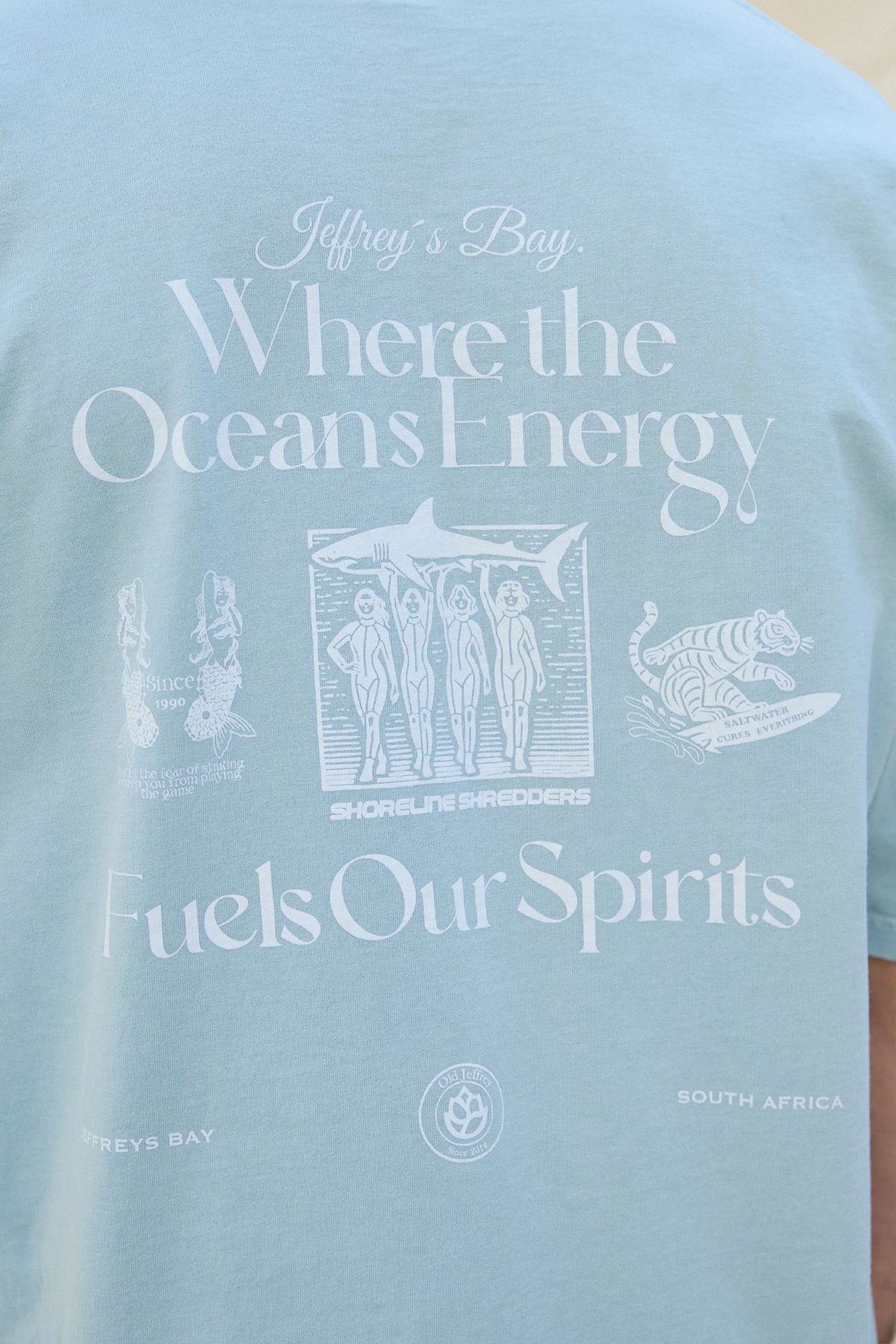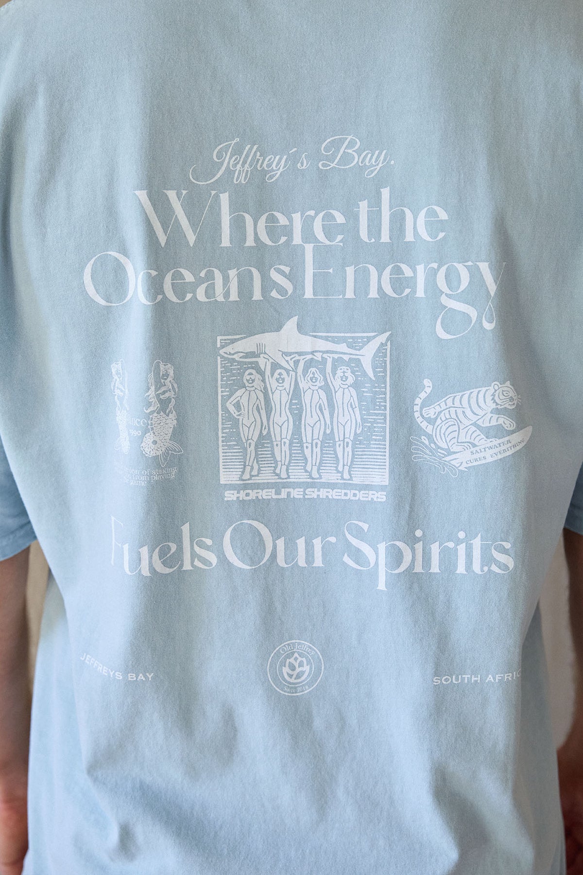 Diseñada para los que viven entre el sol y la espuma del mar. La camiseta Fuels Our Spirits captura la esencia del verano eterno. Un homenaje gráfico al estilo de vida costero y a la energía que solo se encuentra en la orilla de una buena ola.