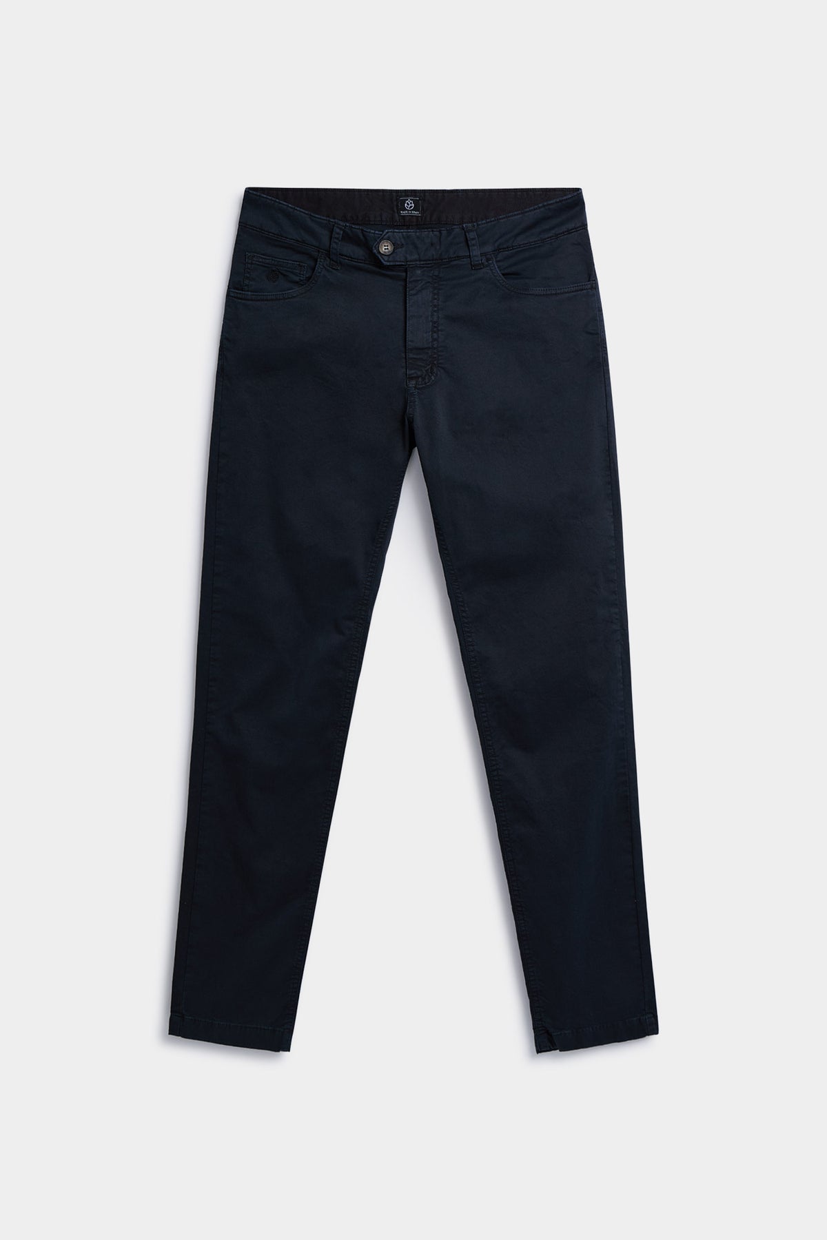 Desenhadas e confeccionadas em Córdoba, 100% algodão, estas calças de cinco bolsos são uma peça versátil e atemporal, indispensável no seu guarda-roupa. Tingidas em um elegante azul-marinho desbotado com corantes naturais, elas se adaptam facilmente a todos os tipos de combinações, tanto em cores quanto em tecidos.