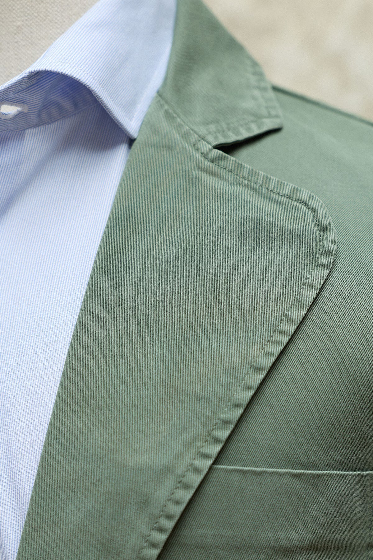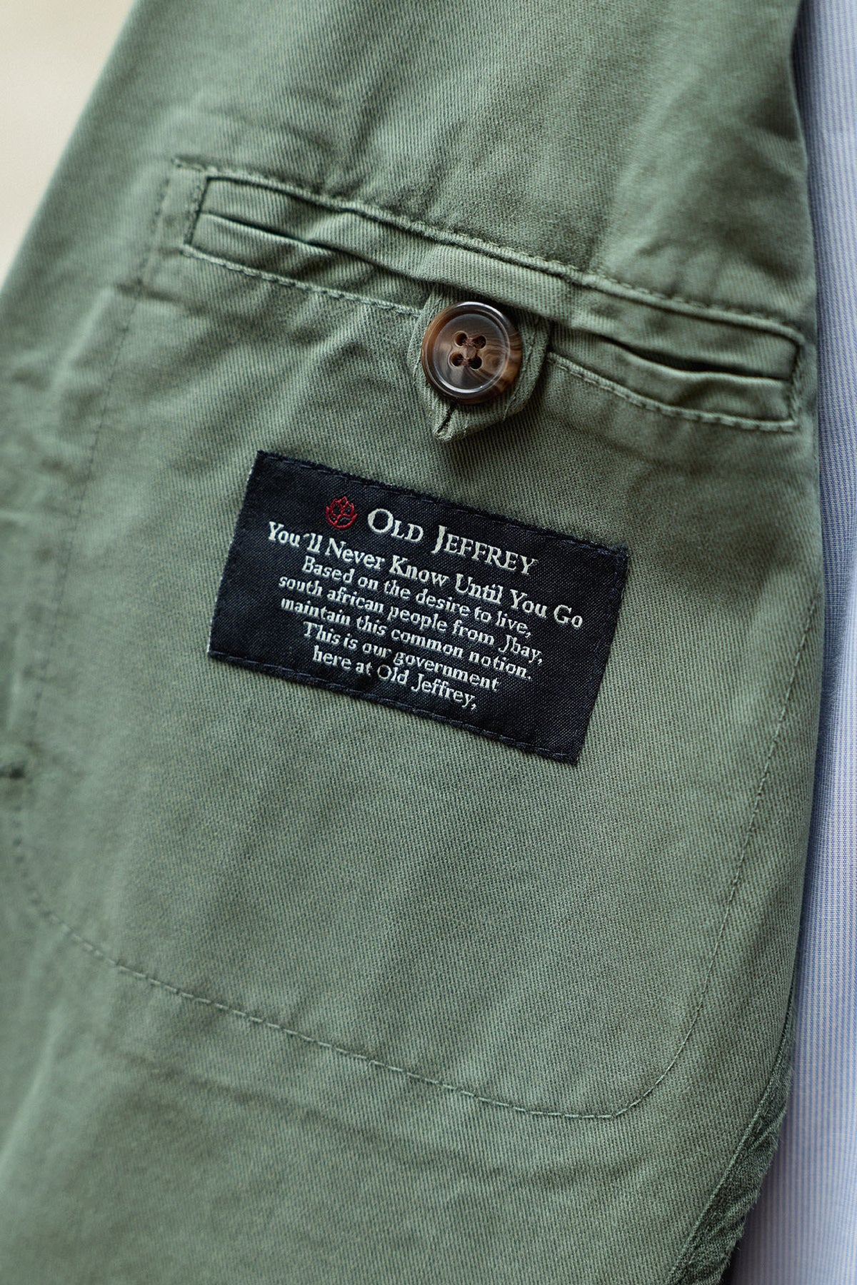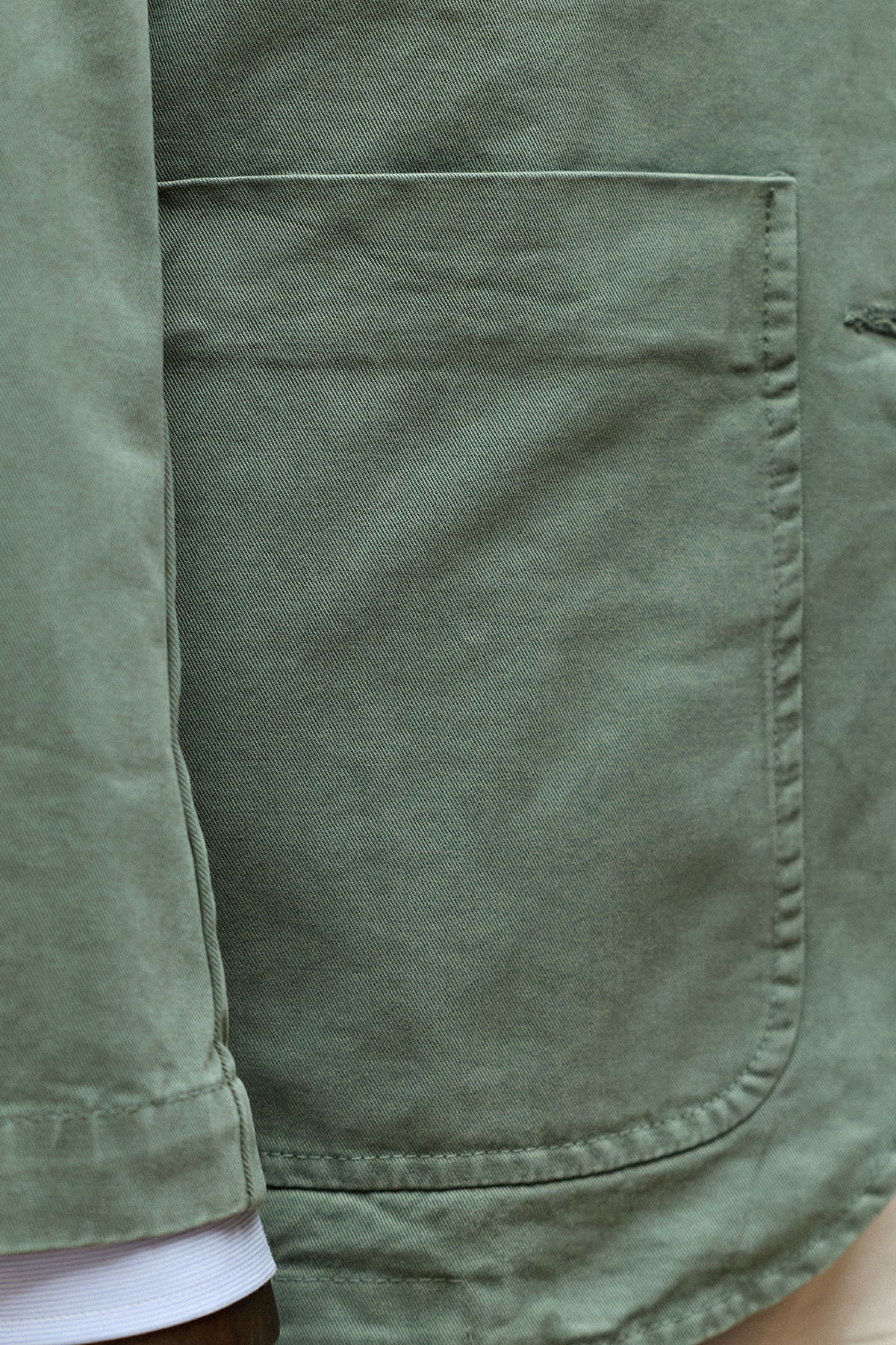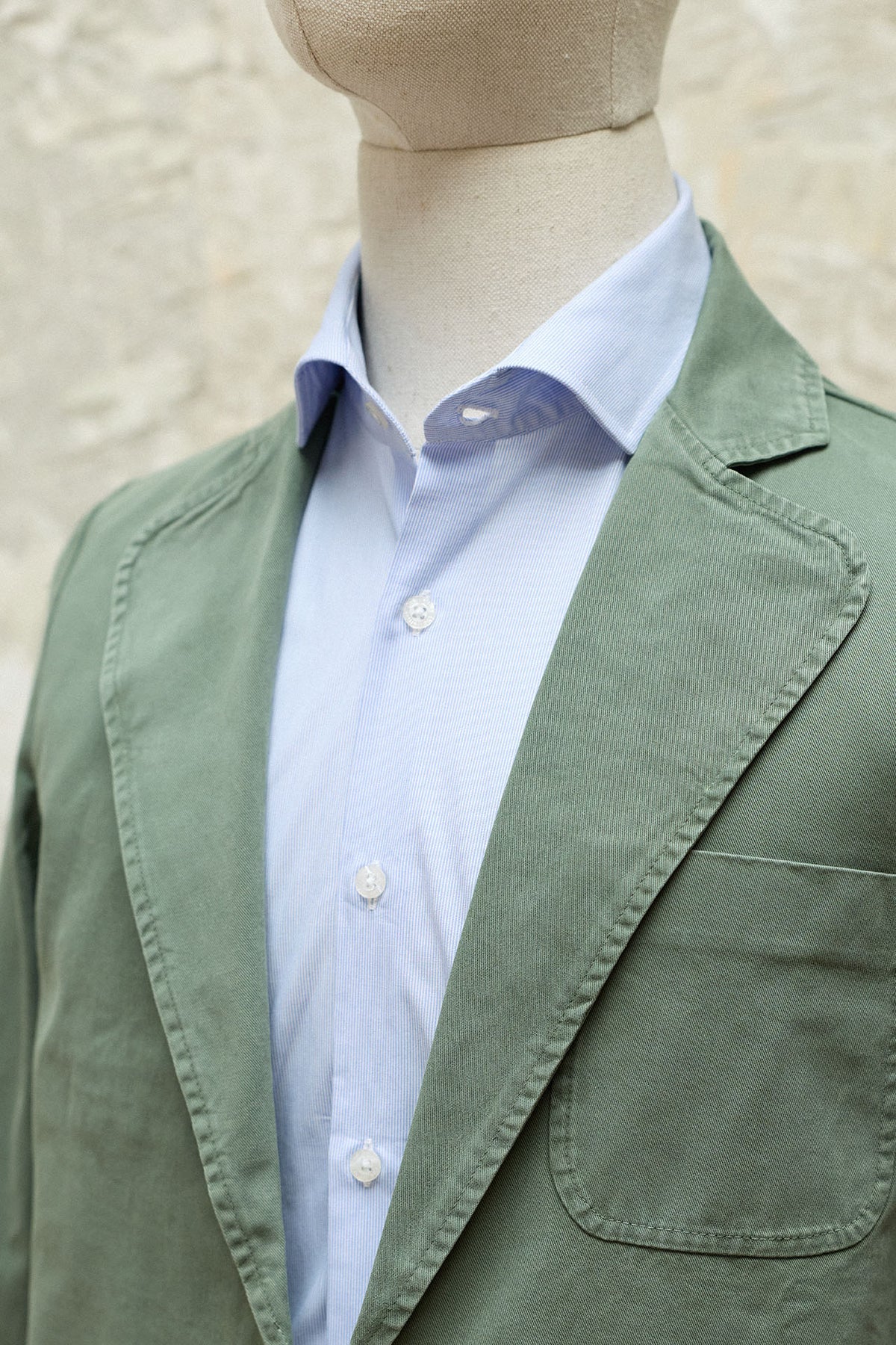 Produzimos nosso blazer na Espanha com tecido 100% algodão tingido em verde-caça com corantes naturais. Os principais detalhes incluem: