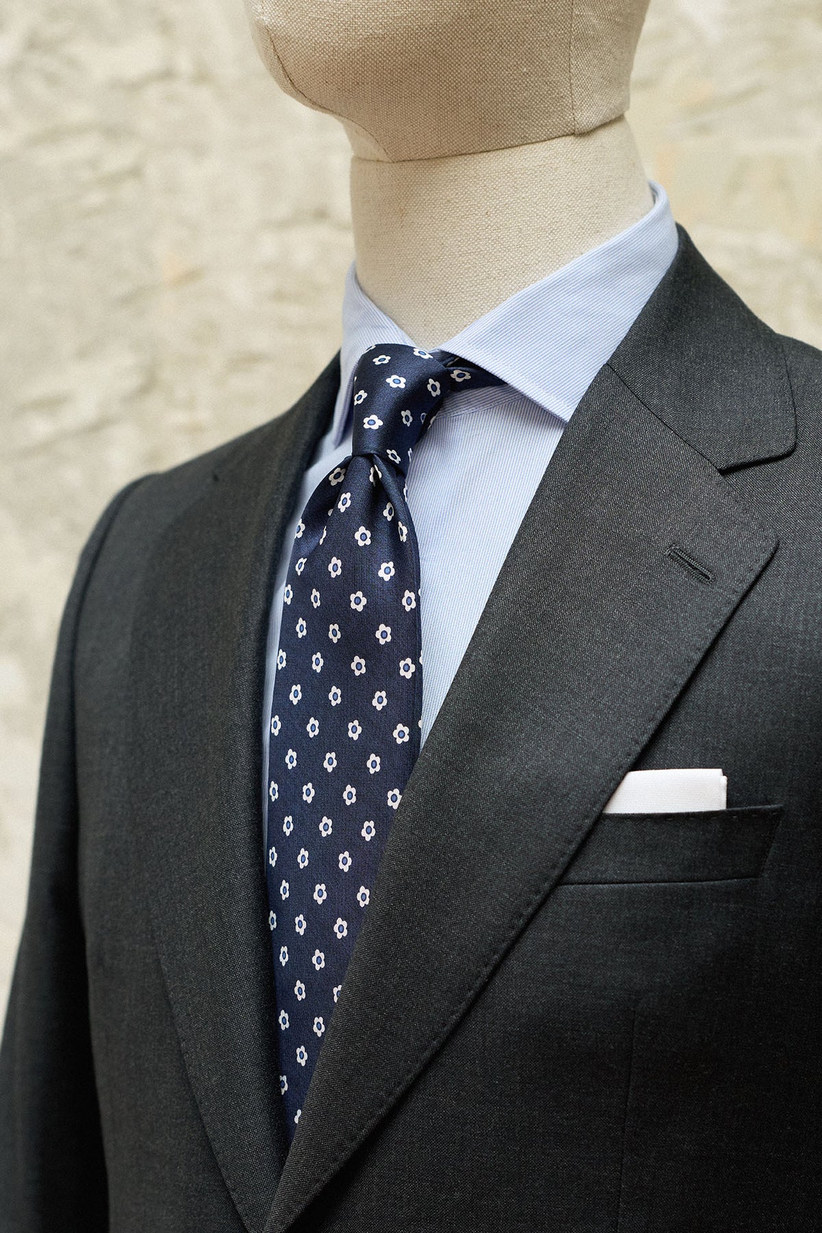 Descubra esta gravata exclusiva, 100% seda, feita à mão numa pequena oficina em Nápoles, Itália . Cada peça é confecionada com uma atenção minuciosa aos detalhes e um acabamento totalmente artesanal , refletindo a tradição e a excelência da alfaiataria napolitana.
