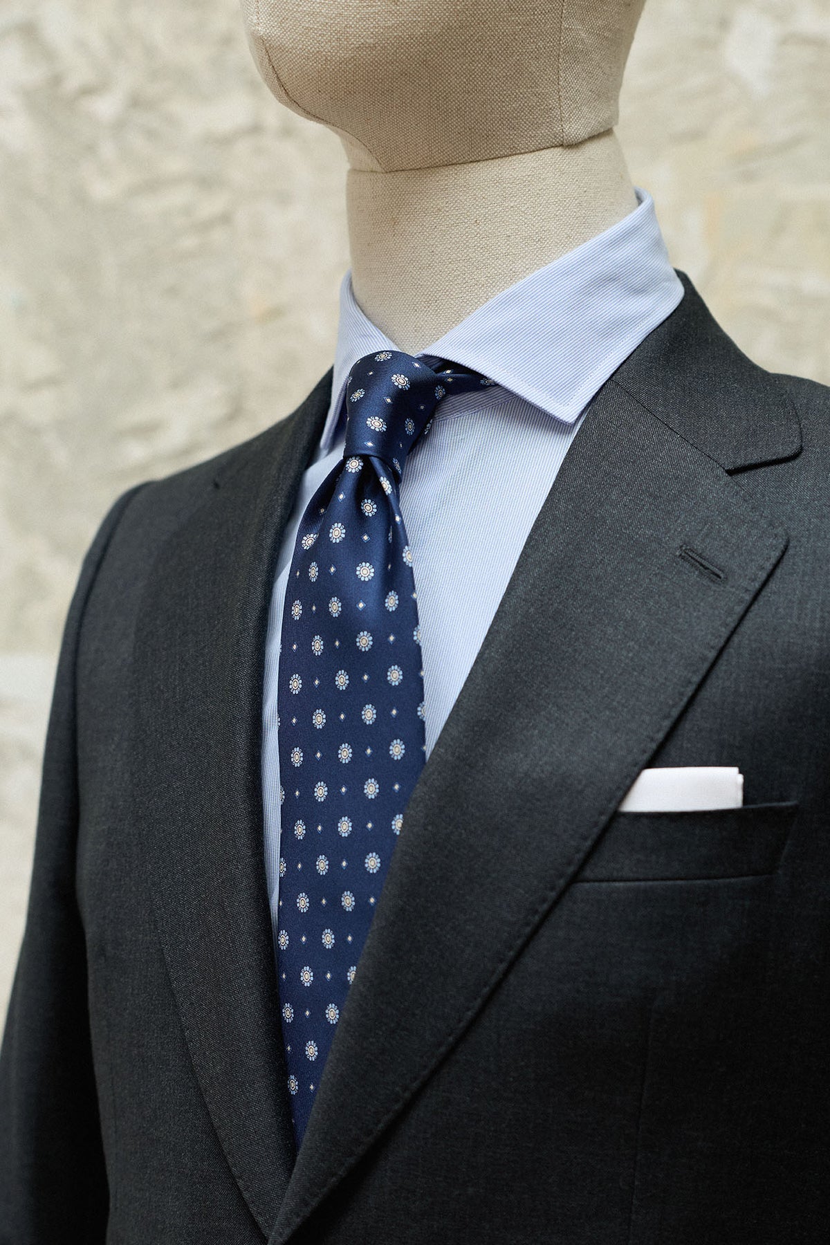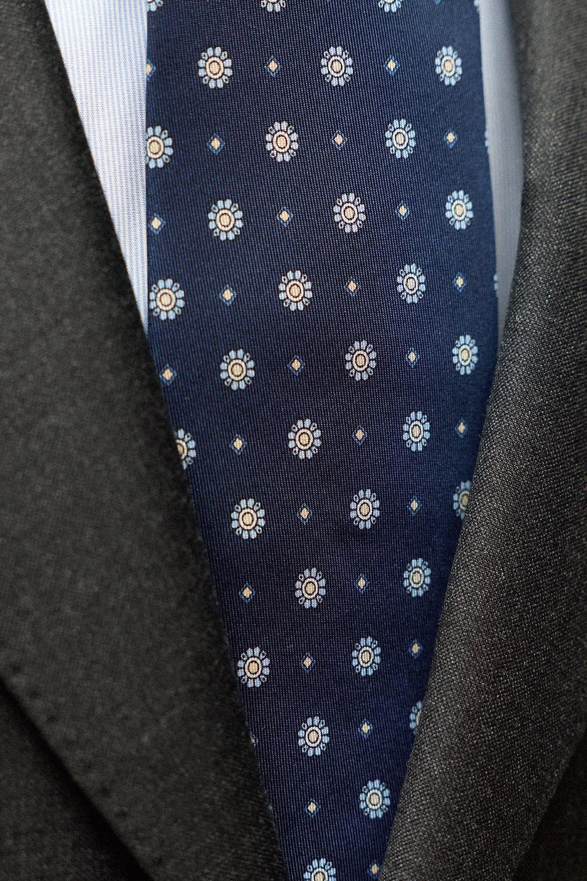 Descubra esta gravata exclusiva, 100% seda, feita à mão numa pequena oficina em Nápoles, Itália . Cada peça é confecionada com uma atenção minuciosa aos detalhes e um acabamento totalmente artesanal , refletindo a tradição e a excelência da alfaiataria napolitana.